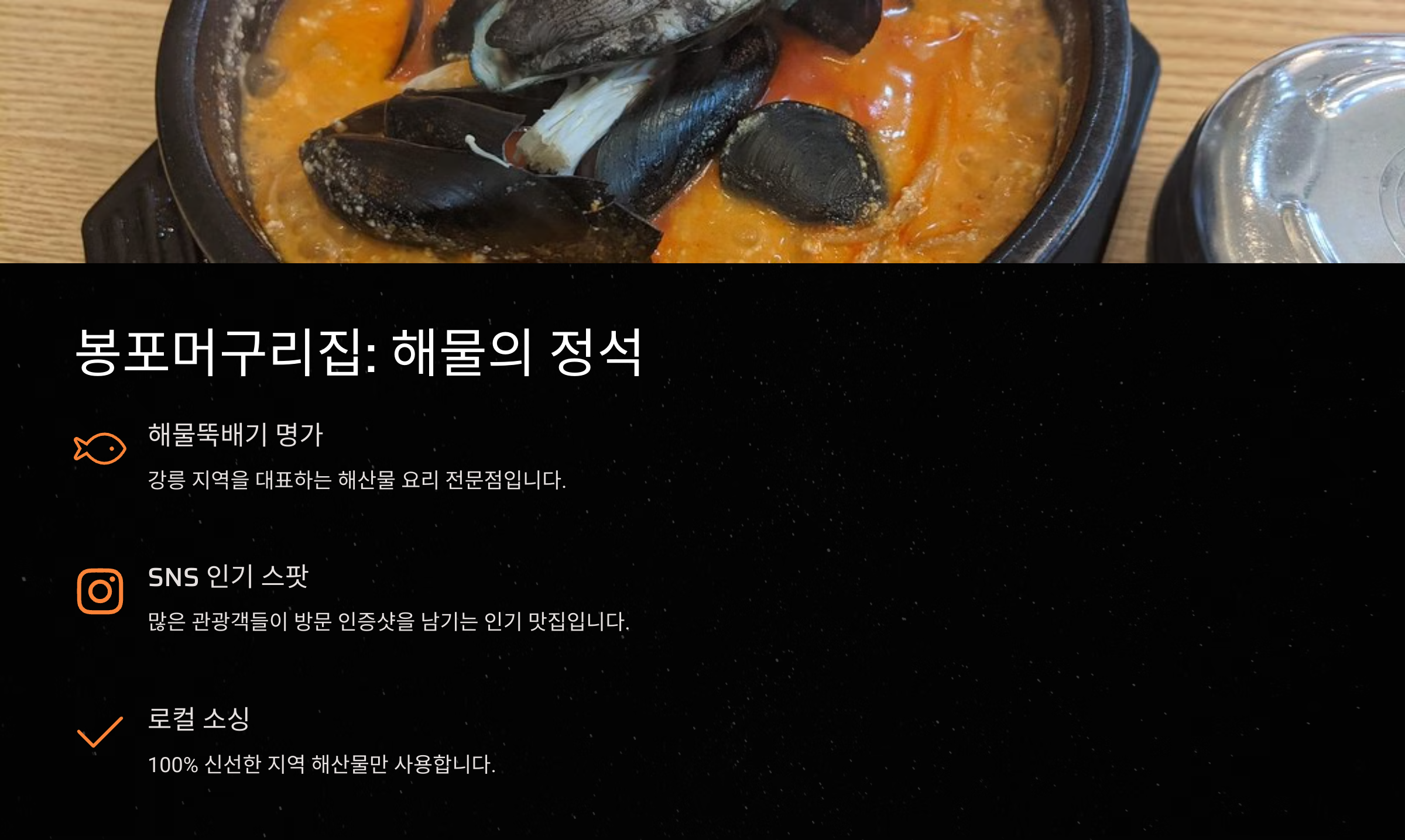 강릉을 대표하는 해물뚝배기 맛집, 봉포머구리집은 TV 맛집 프로그램에도 여러 번 소개된 강릉의 전설적인 바다밥집이에요! 아침부터 줄 서는 건 기본이랍니다 🦐🦑