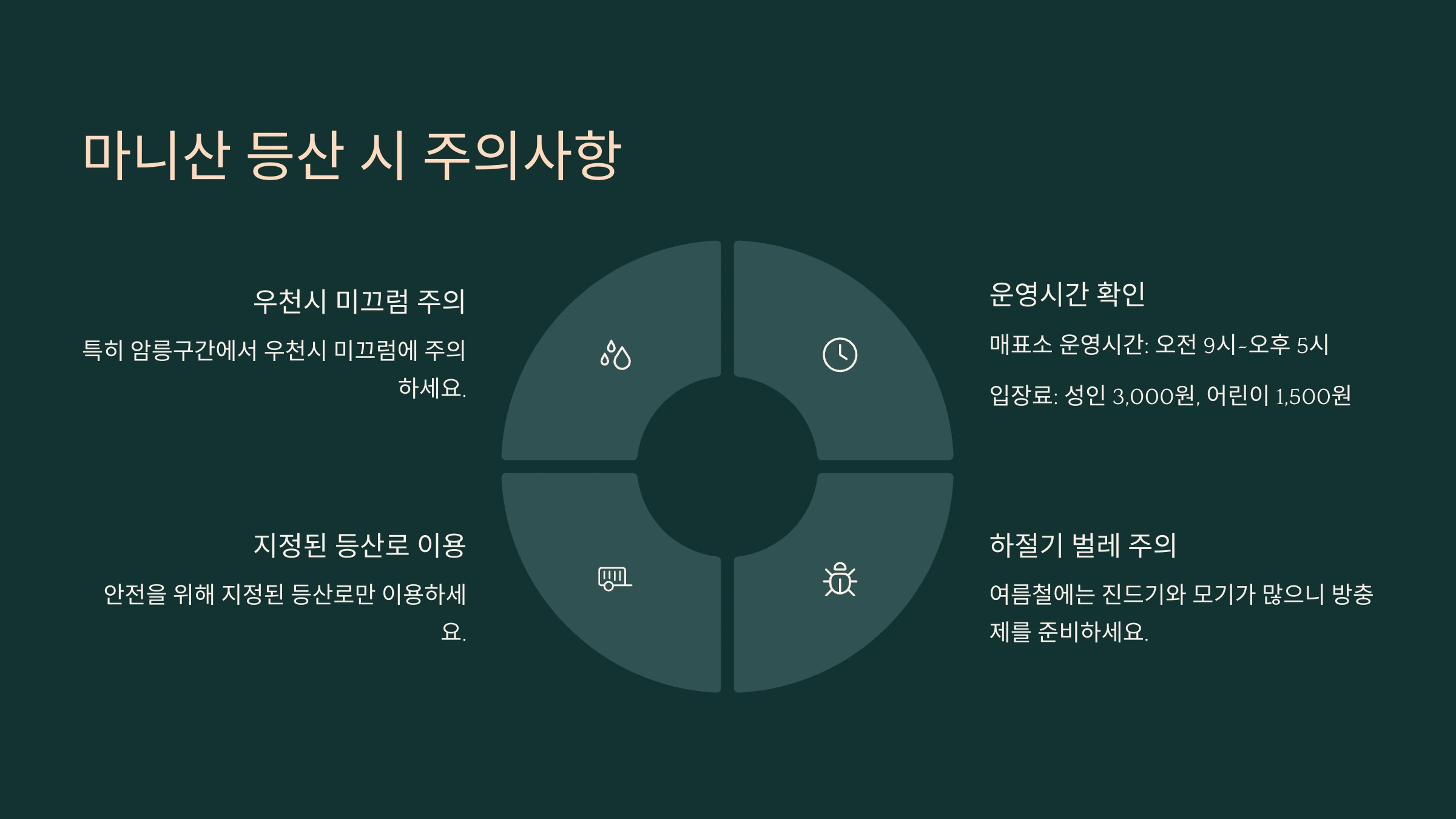 강화도 마니산 등산을 계획할 때는 몇 가지 주의사항을 반드시 숙지해야 합니다. 가장 먼저, 출발 전 날씨를 꼼꼼히 확인하는 것이 중요합니다. 비나 눈이 내리면 암릉 구간이 매우 미끄러워져 위험해질 수 있으므로, 기상 상황이 좋지 않을 경우 일정을 변경하는 것이 현명합니다.