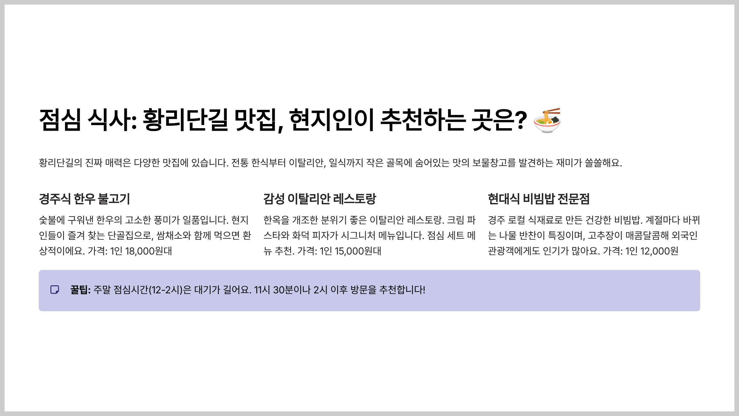 3. 점심 식사: 황리단길 맛집, 현지인이 추천하는 곳은? 🍜
