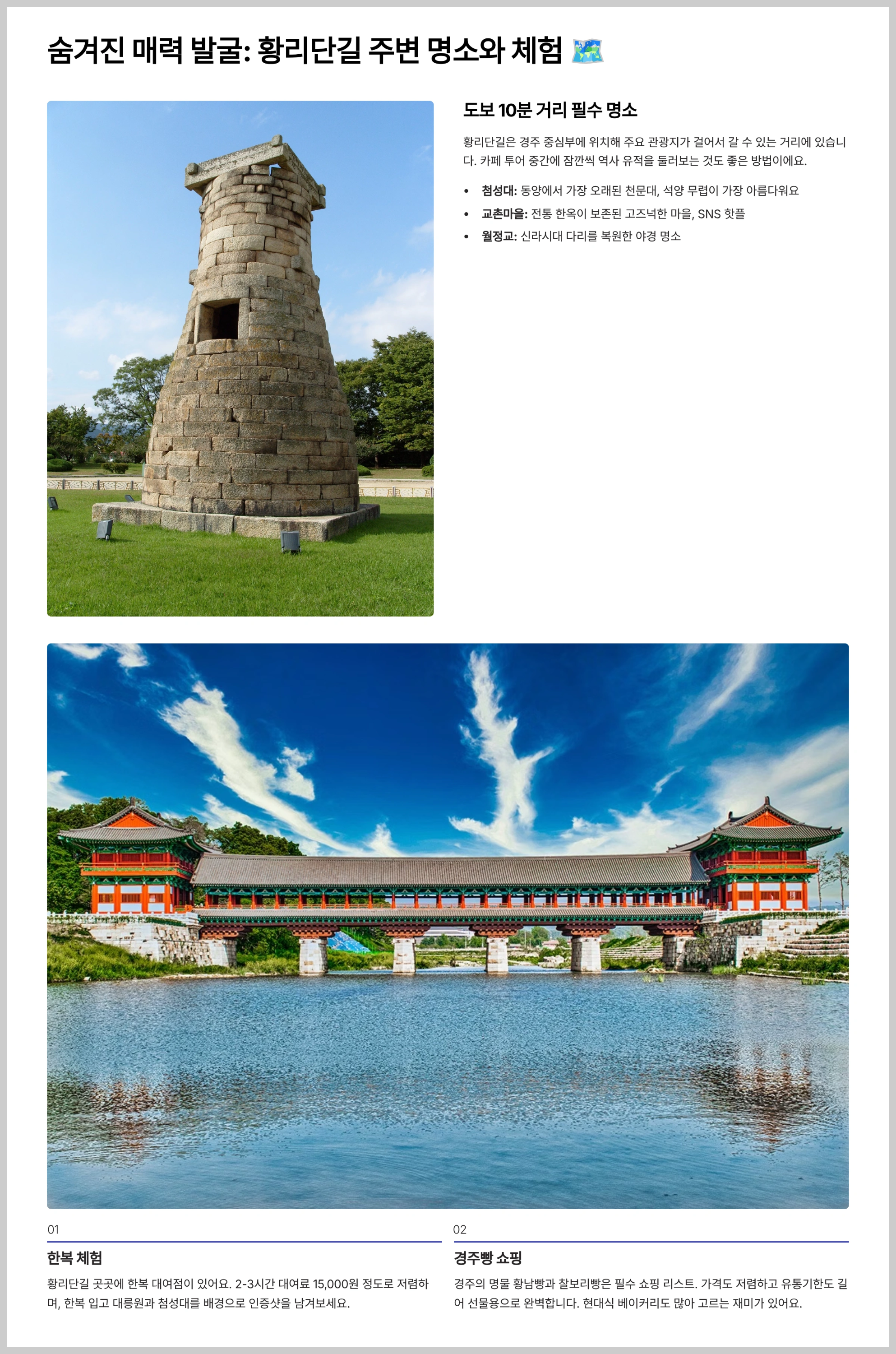 5. 숨겨진 매력 발굴: 황리단길 주변 명소와 체험 🗺️