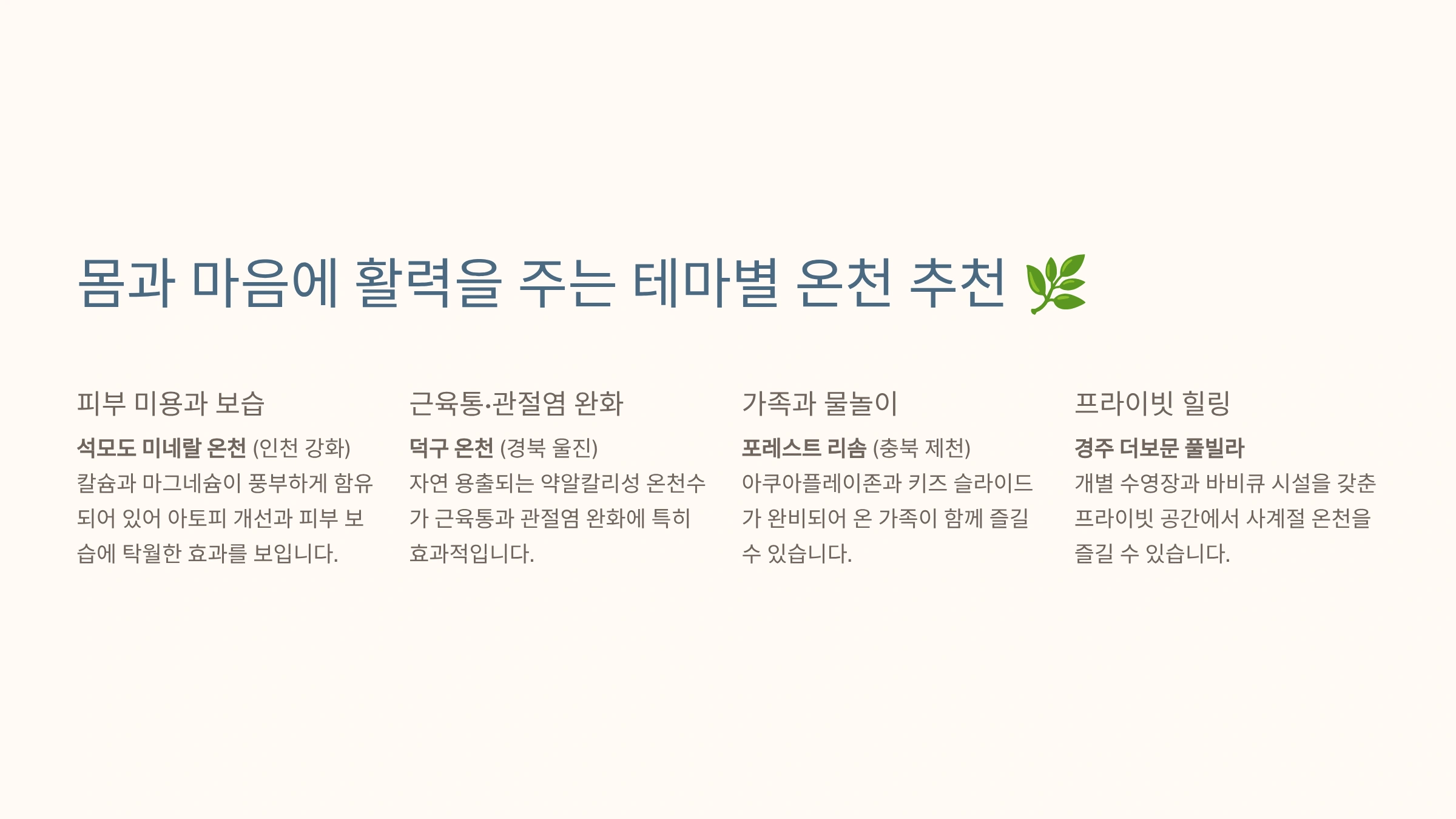 3. 몸과 마음에 활력을 주는 테마별 온천 추천 🌿
