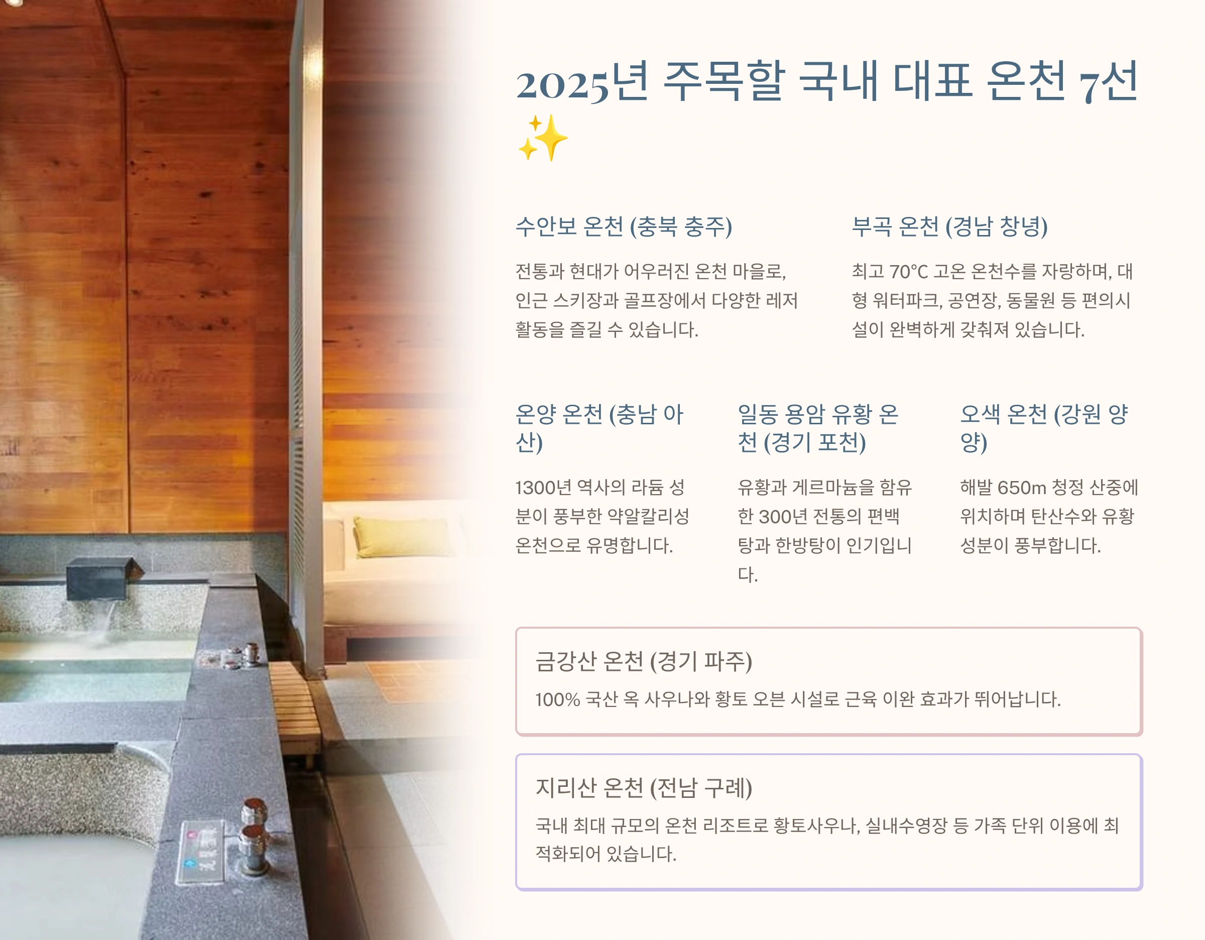 2. 2025년 주목할 만한 국내 대표 온천 지역 분석 ✨