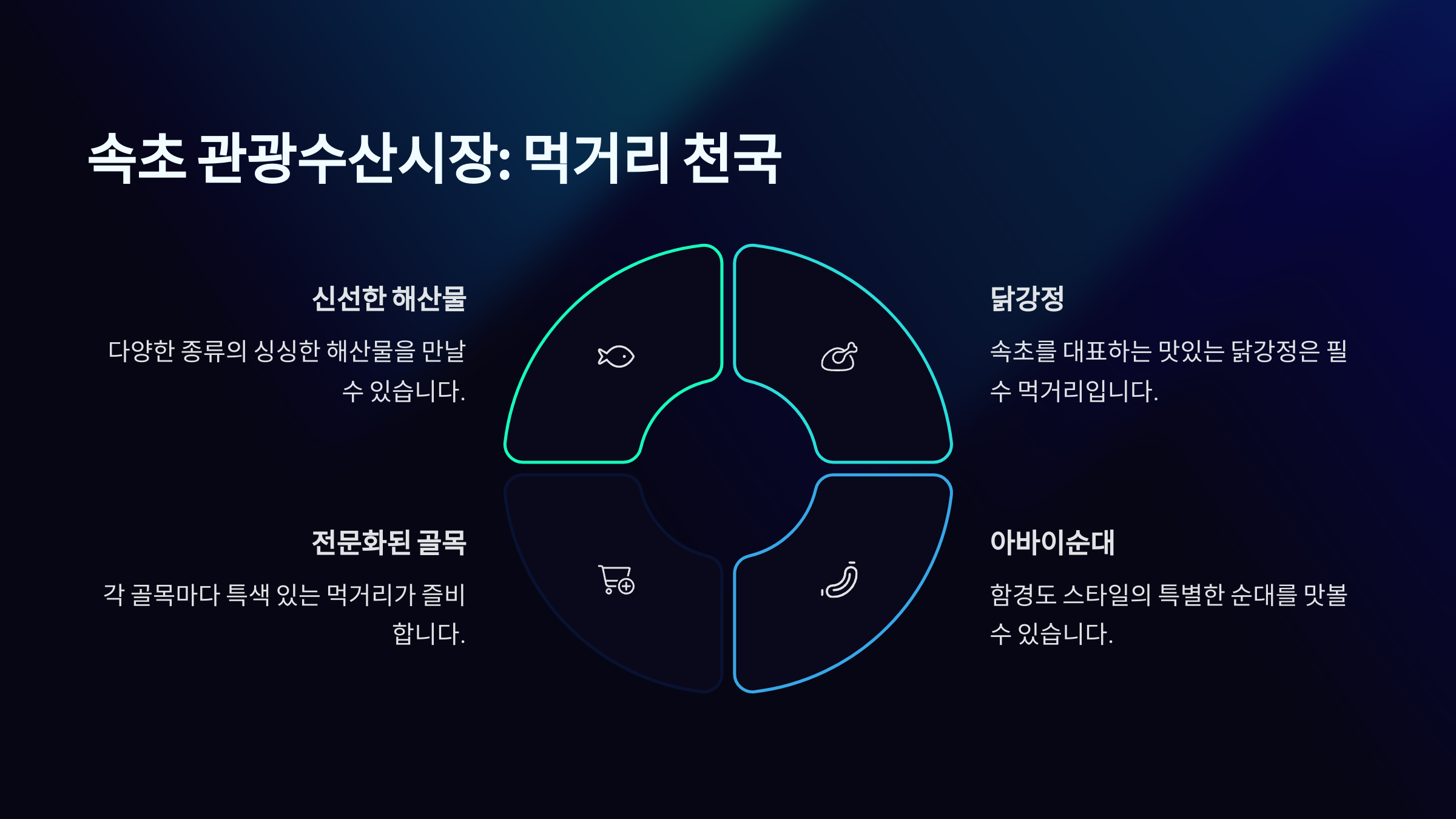 속초에 가면 반드시 들러야 할 명소 중 하나가 바로 관광수산시장이에요. 현지인들은 여전히 ‘속초 중앙시장’이라 부르는데요, 이곳은 속초의 모든 맛이 모여 있는 진짜 먹거리 천국이에요.