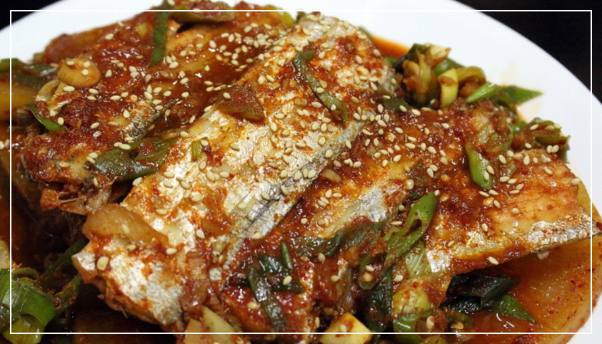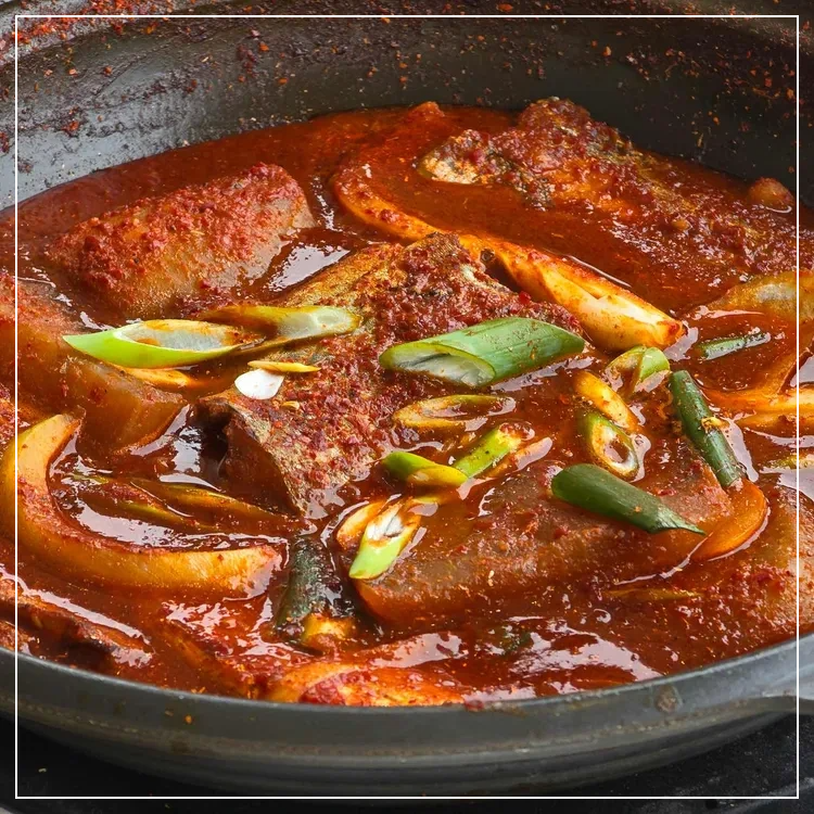 여수 근해에서 잡힌 은빛 갈치를 매콤달콤한 양념으로 조려낸 갈치조림은 부드러운 살과 깊은 맛이 일품입니다.