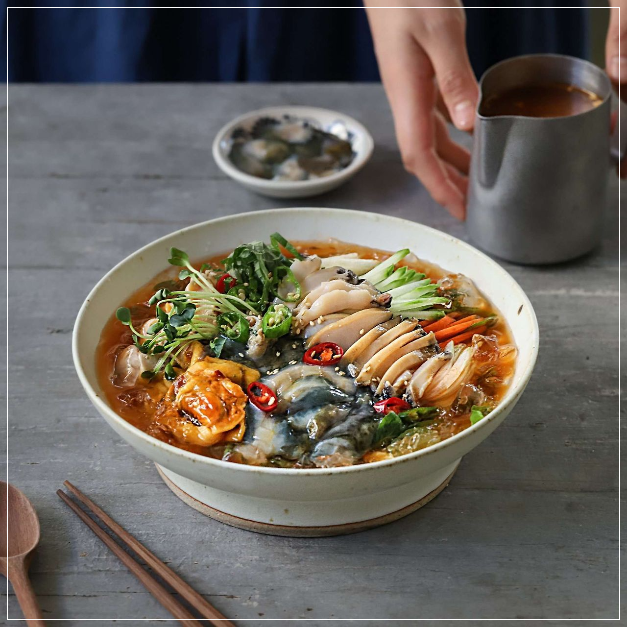 전복 외에도 각종 해산물이 함께 들어가 더욱 풍성한 맛을 선사합니다.