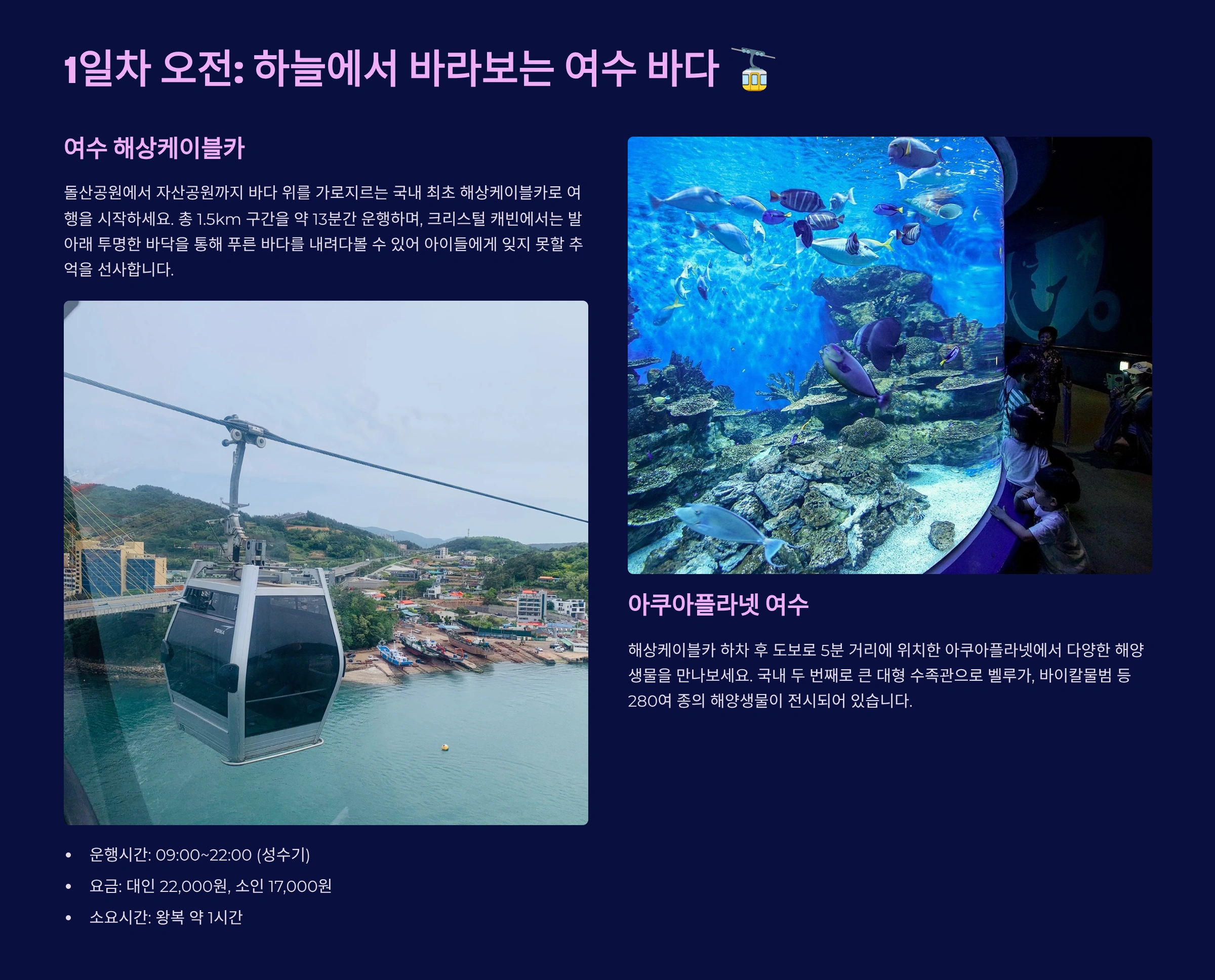 1. 1일차 오전: 여수 해상케이블카와 아쿠아플라넷 🐠