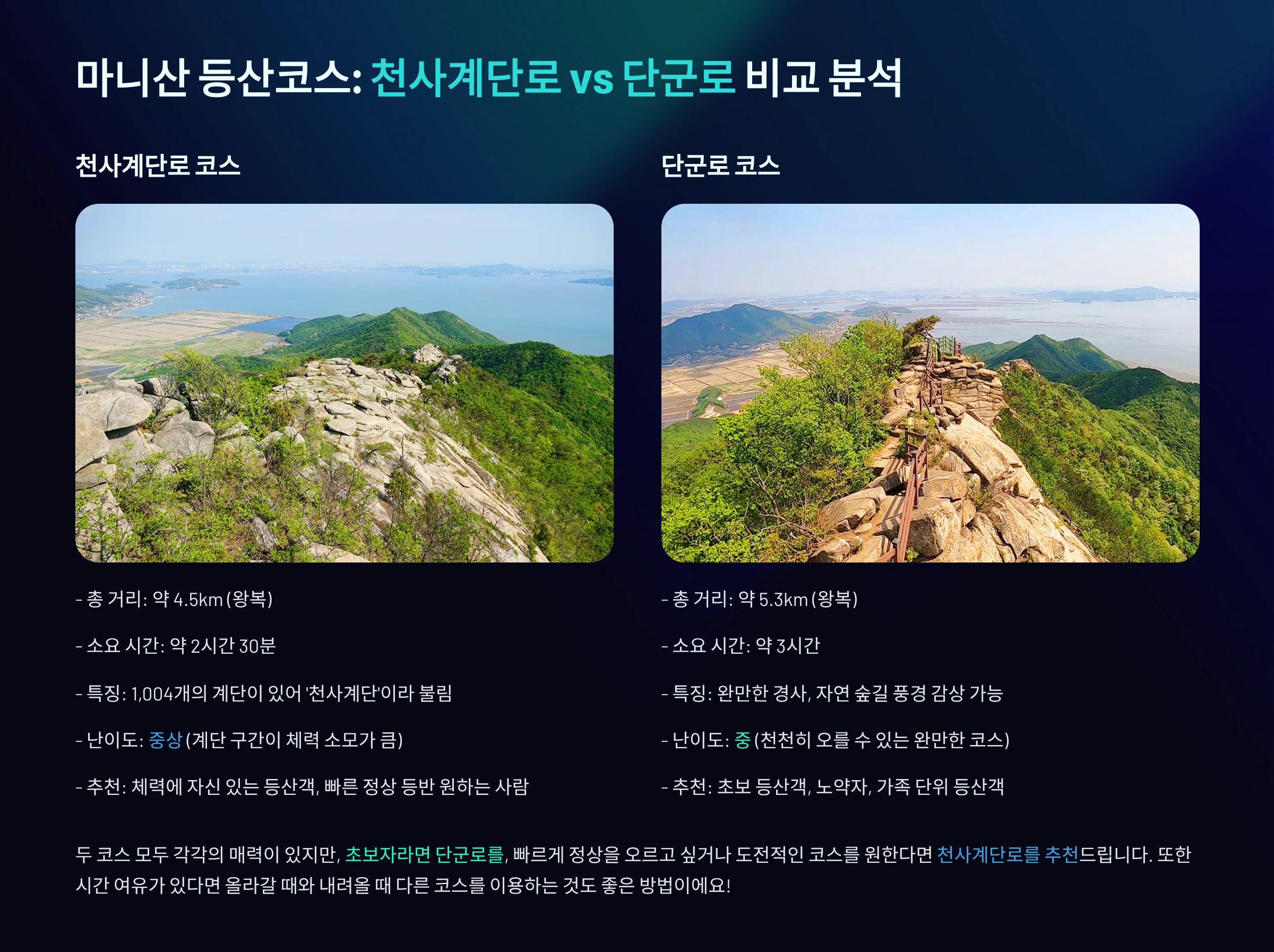 마니산 등산코스: 천사계단로 vs 단군로 비교 분석 🧐