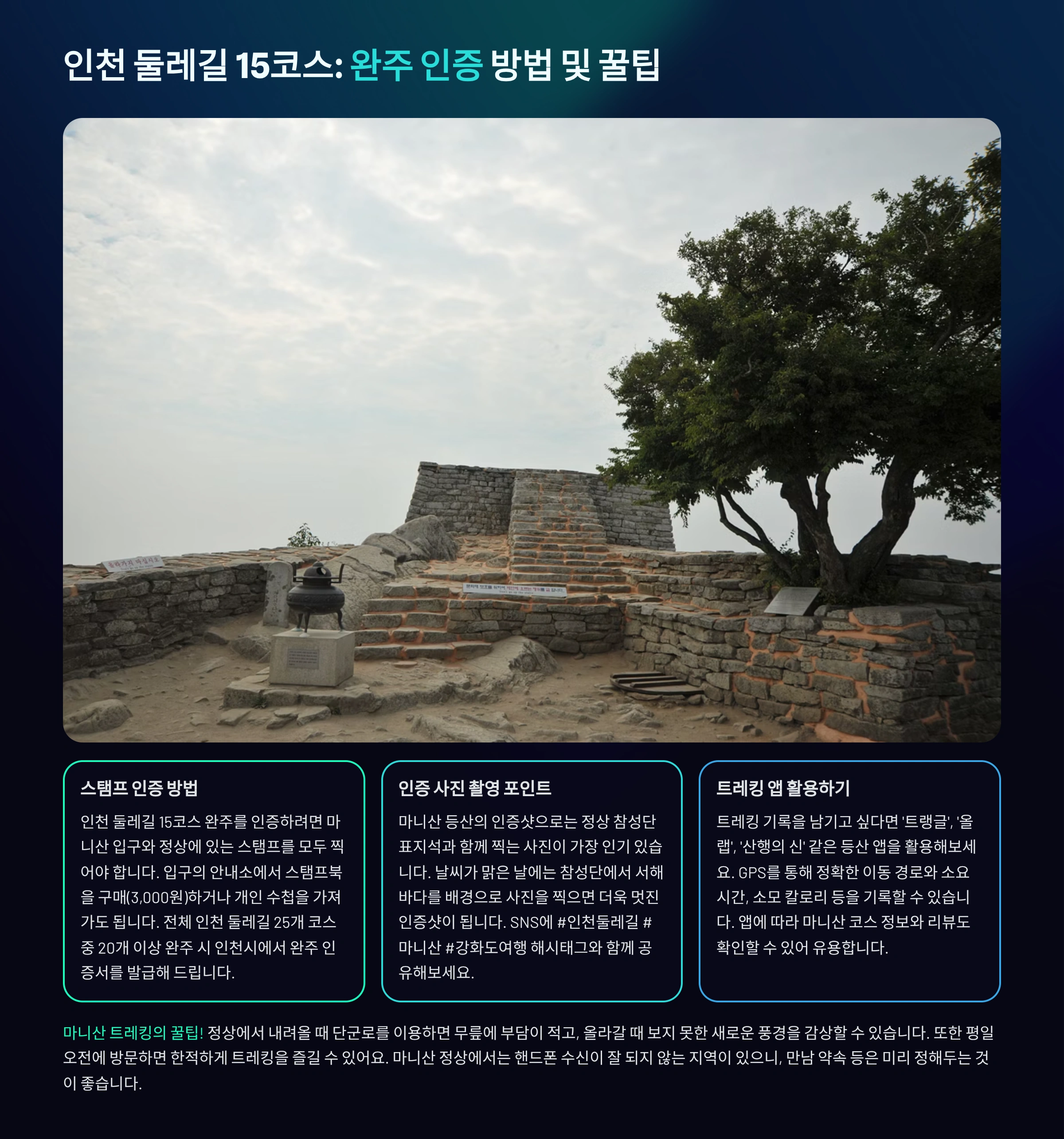 인천 둘레길 15코스: 완주 인증 방법 및 꿀팁 🏅