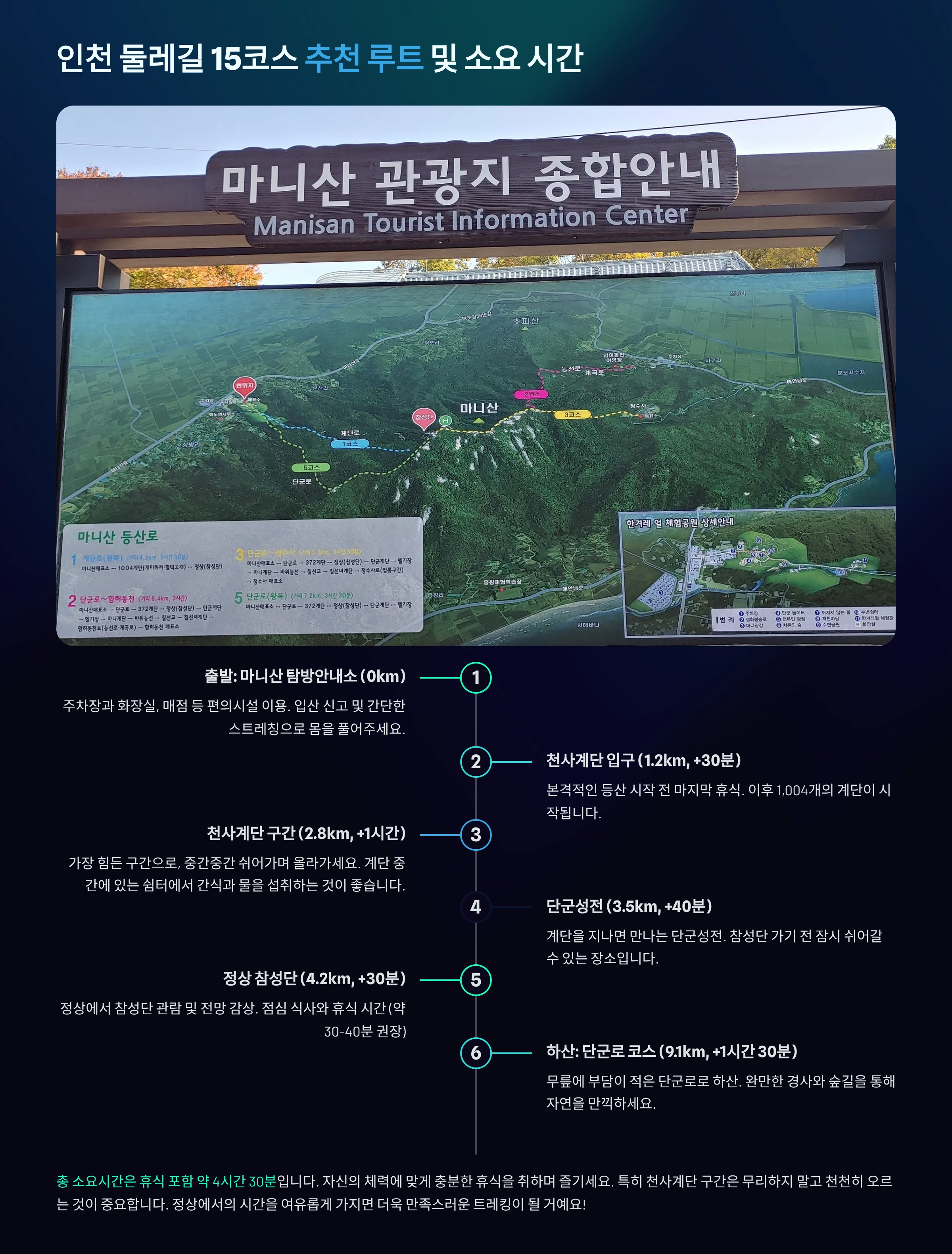 단순히 둘레길을 걷는 것을 넘어, 마니산의 정기를 온전히 느끼고 특별한 추억을 만들어보세요. 여러분의 완주를 응원합니다! 😊
