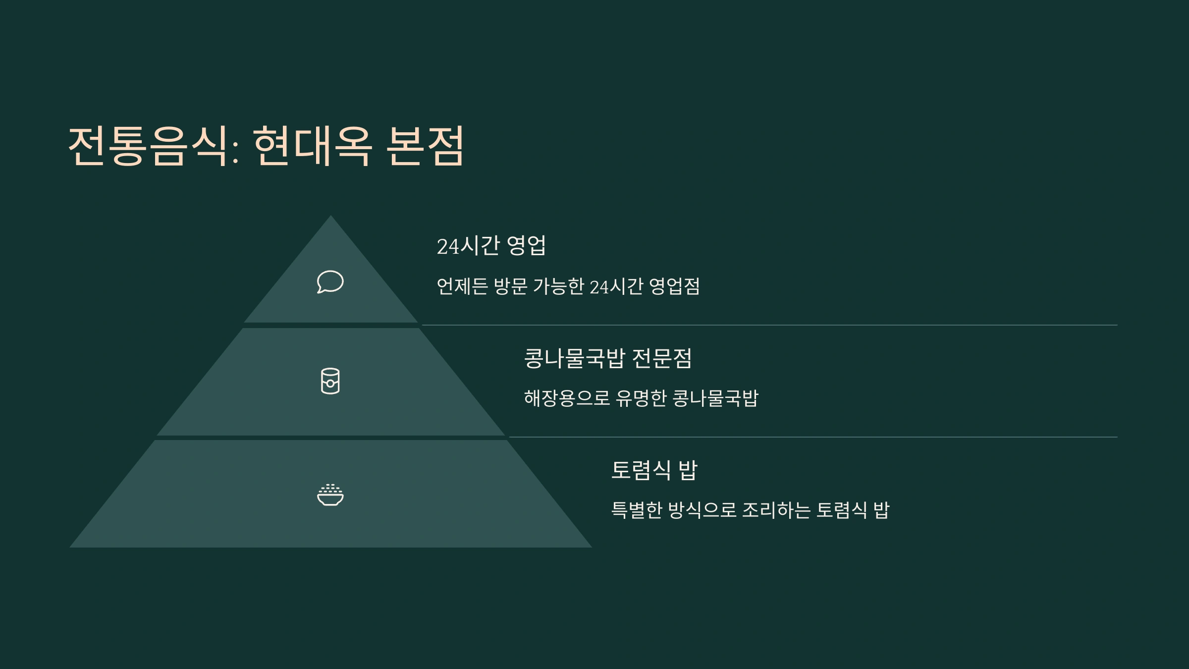 전주 한옥마을 인근에 위치한 현대옥 본점은 1979년부터 시작된 전통 있는 콩나물국밥 전문점으로, 전주를 대표하는 맛집 중 하나입니다. 현지인뿐만 아니라 관광객들에게도 큰 사랑을 받고 있으며, 다양한 메뉴와 깔끔한 맛으로 유명합니다