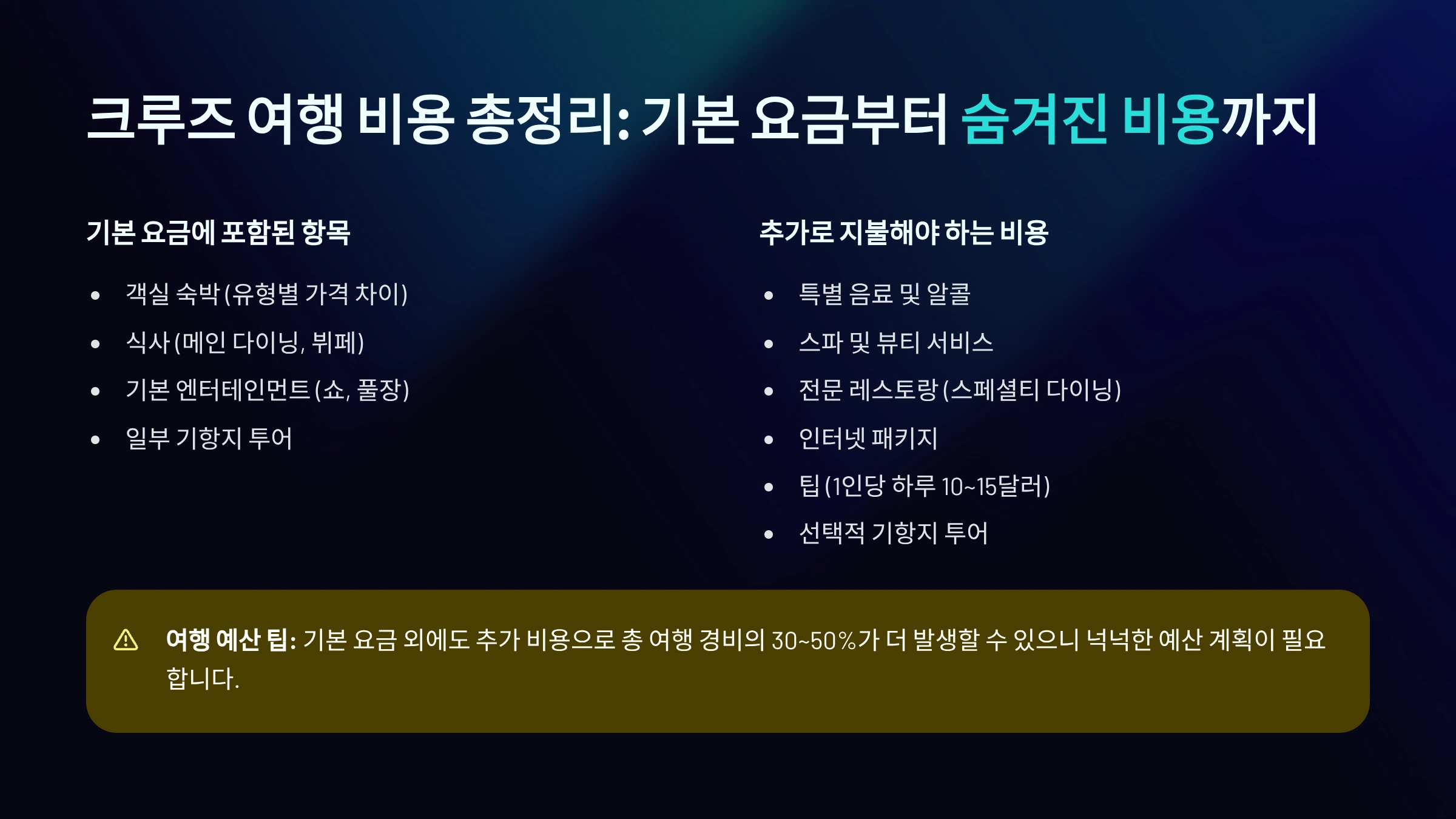 - 2. 크루즈 여행 비용 총정리: 기본 요금부터 숨겨진 비용까지
