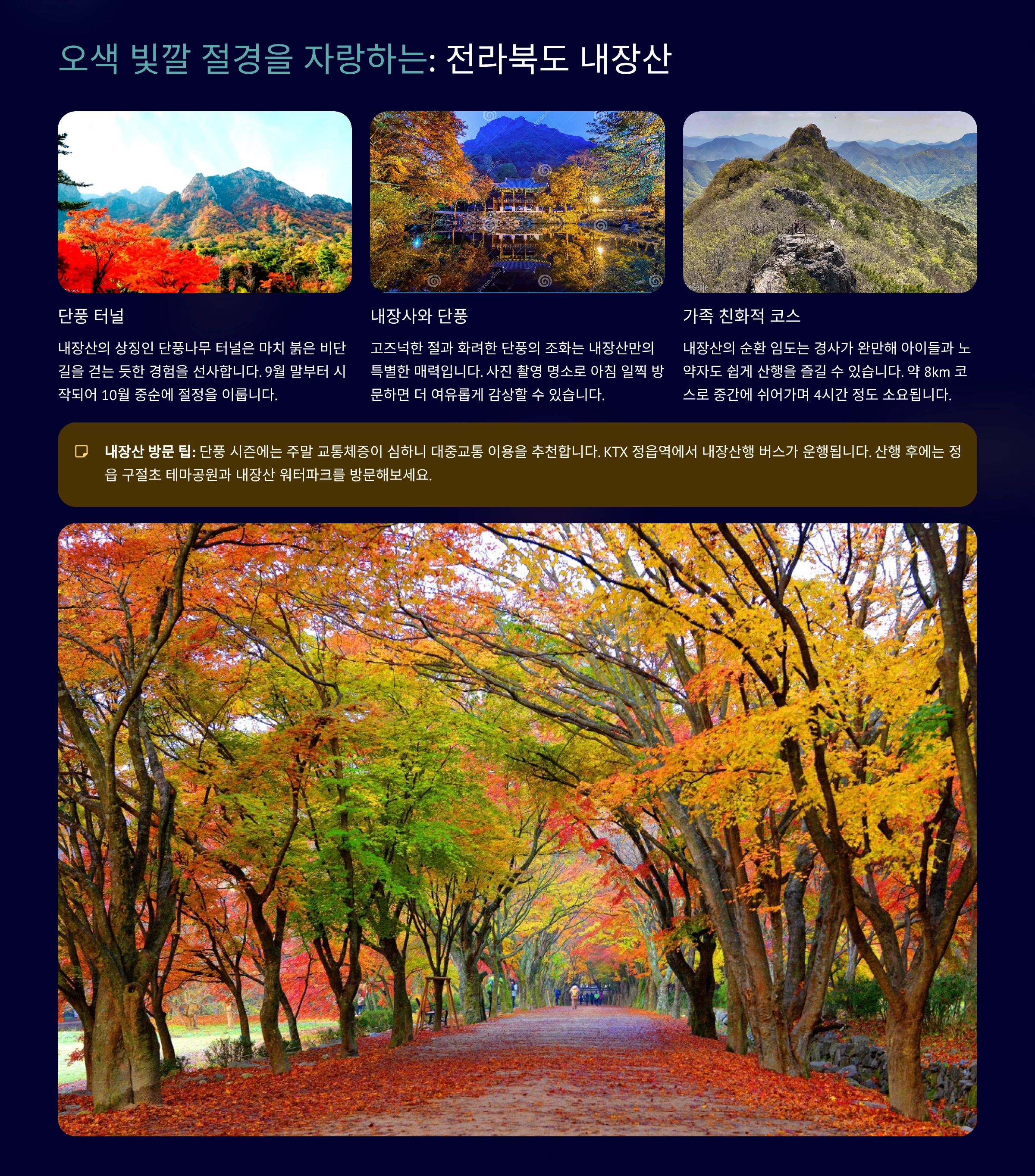오색 빛깔 절경을 자랑하는: 전라북도 내장산 🏞️